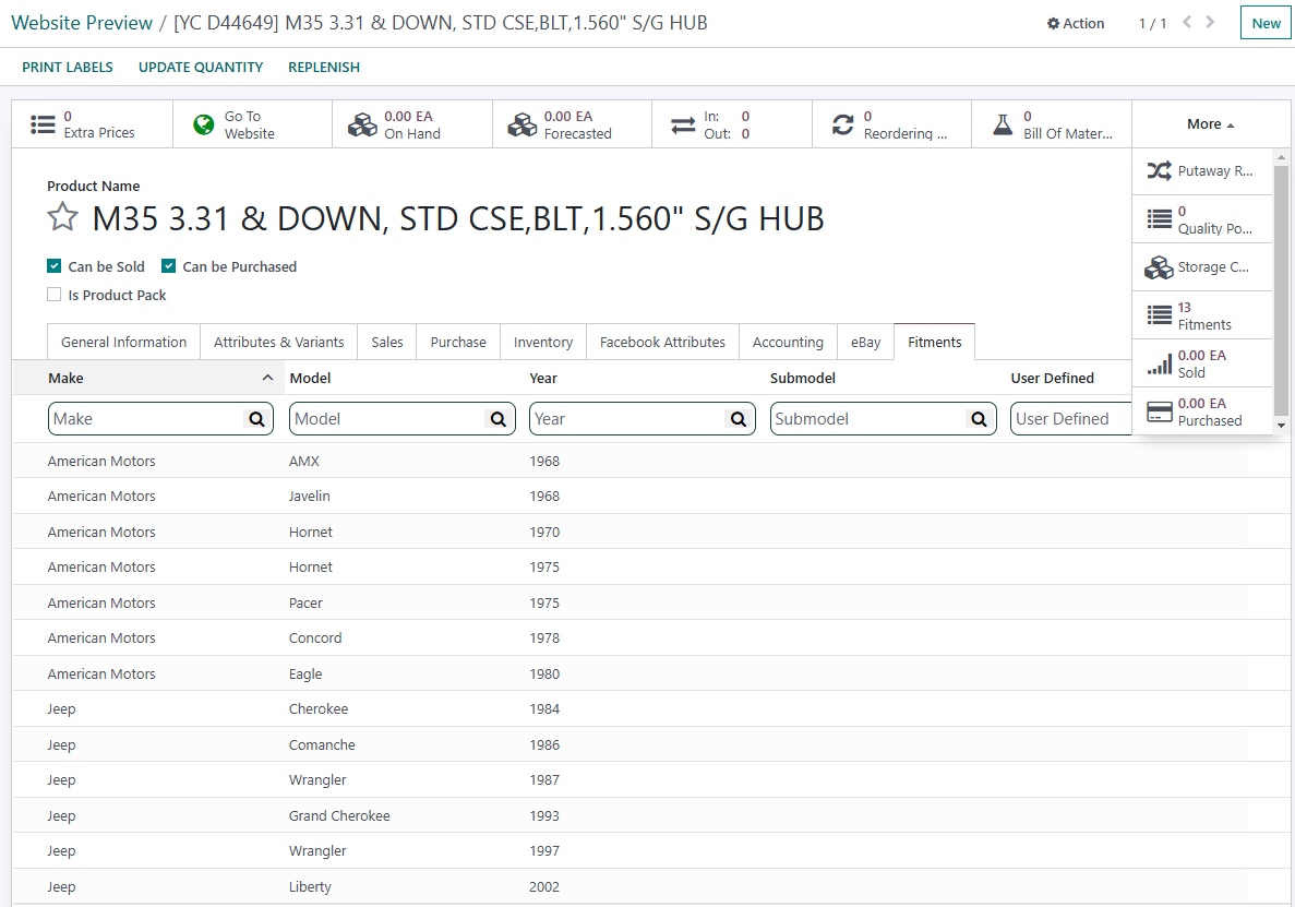 PartSync for Odoo adds BUILT-IN Make, Model, Year, E-commerce and other capability that is unique and critical for any industry requiring Make, Model Year.